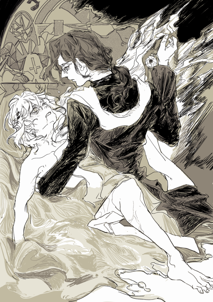 他的神父大人给了他想要的东西,因此他们二人之间建立了联系。春人想。和往常的任何一次都不同,那些只是金钱与欲望的交易,而这一次则是因为爱,两人都打破了自己的界限,就像狐狸从小王子那里得到了名字,从此二人在对方的身上刻下了爱与罪的印记,这份印记会跟随他们成长,老去,死亡,末日审判,直到未来永劫。